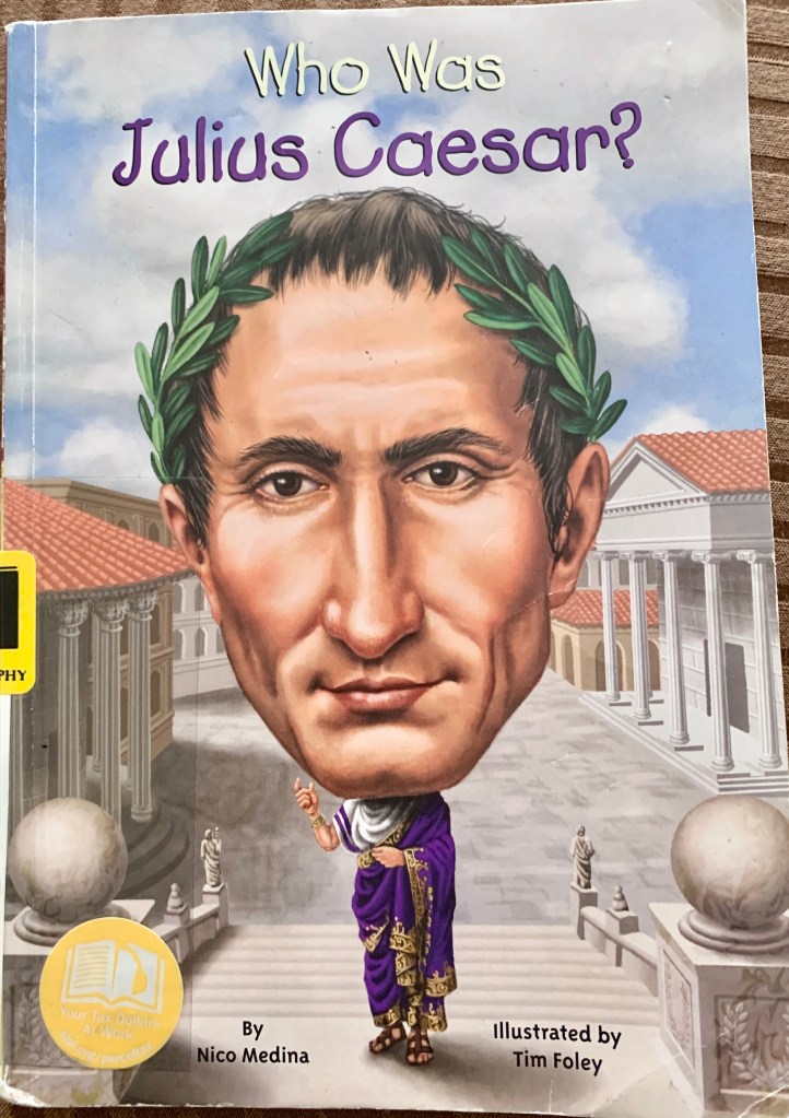 Plot: Julius Caesar made the Roman empire stretch from Gaul to parts of Egypt.He earned the Corana Civica, an award for warriors who risked their own life to save another’s. This book contains information such as when he was born, whom he married, what his tactics were in war, his most famous battles, and when he died.