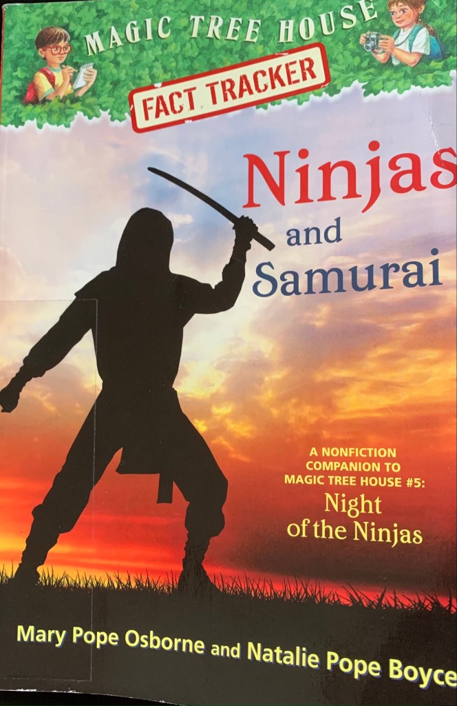 This book by Mary Pope Osborne and Natalie Pope Boyce is a fact tracker. This fact tracker is related to Magic Tree House book #5 Night of the Ninjas. Join Jack and Annie as they learn facts about Ninjas and Samurai. Who were the Ninjas? What kinds of weapons did they use? How are Samurai different from these sneaky Ninjas? Who in the world did Samurai protect? Find out in this awesome fact tracker!
