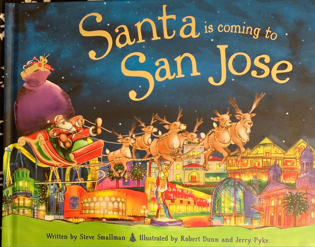 Plot: This book is written by Steve Smallman. In this book, Santa is going to deliver lots and lots of gifts to all homes in San Jose, California on Christmas eve! It begins with a conversation between and Santa and an elf. Santa is wondering of all the children in San Jose have been good this year. He puts the gifts on his sleigh and off he goes! He flies over the Arctic Ocean, over Canada, Portland and past San Francisco. He crosses Levis Stadium, Plaza de César Chávez, and finally steers safely over the Children’s Discovery Museum, Happy Hollow Zoo and lands into Kelley Park. Soon Santa is delivering presents to kids in San Jose!
