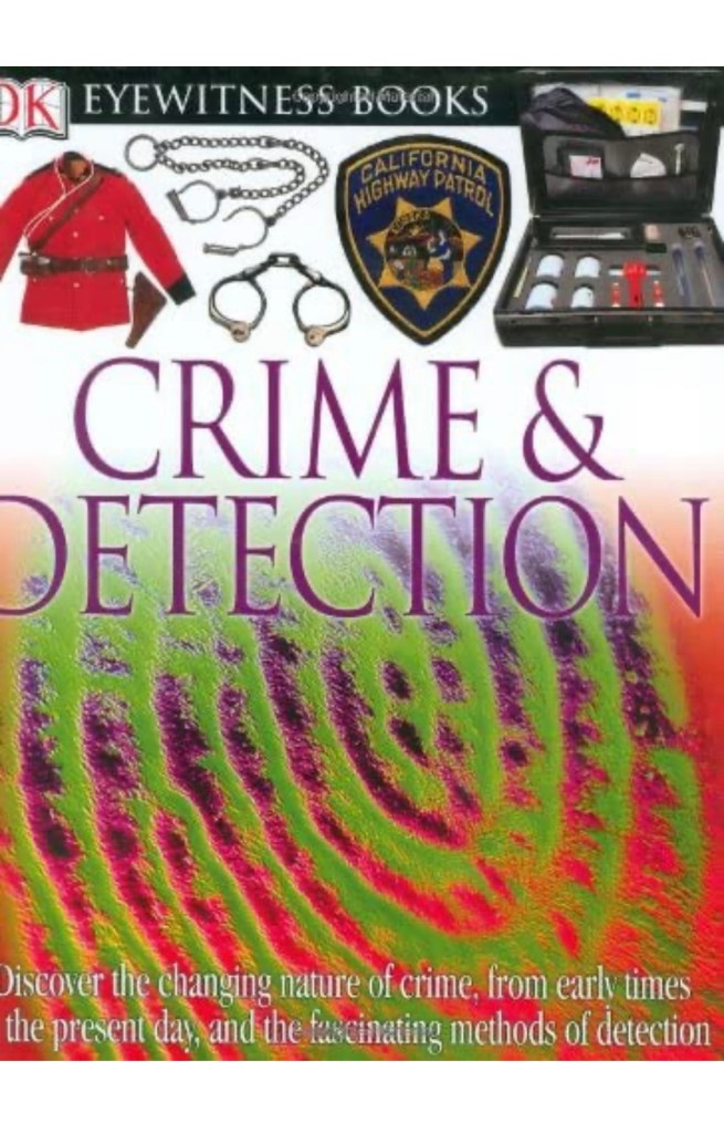 This is an Eyewitness book, which means that it is full of facts and pictures. The book talks about crimes of all kinds, from train robberies, thefts, kidnappings, frauds and swindling, forgery, smuggling, gambling, murder and everyday conventional thieves and much more. This book also talks about how fire investigation units find out out the root cause of suspected arson, how people make a cast of the bones of a deceased body and reform muscles and tissue of clay to make a life-like bust, how finger prints and DNA are used to capture criminals. The book also talks about police uniforms, detectives, undercover cops, etc.